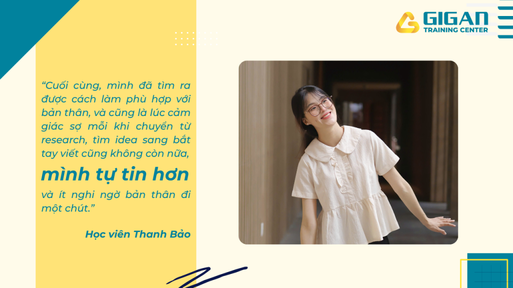 GIGAN Training Center tự hào khi được đồng hành cùng Thanh Bảo trên hành trình tìm câu trả lời và khẳng định bản thân trong lĩnh vực Content Marketing.
