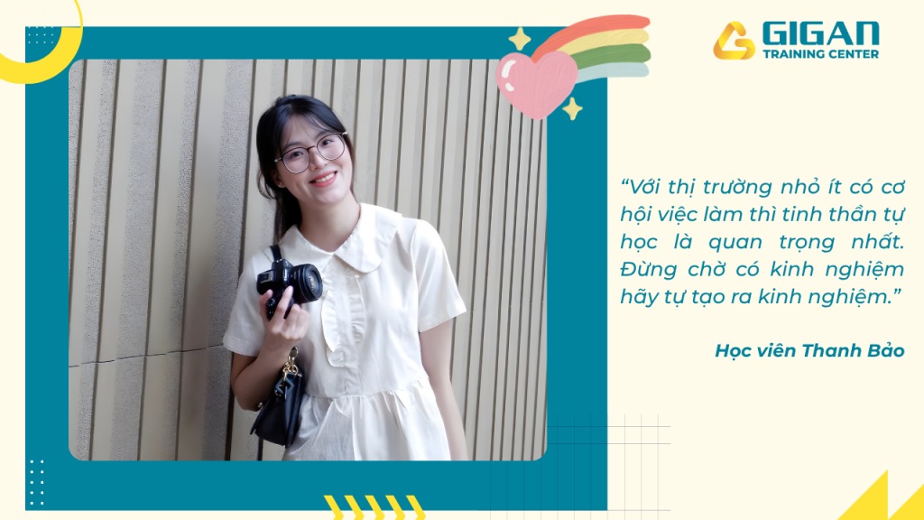 “Lúc nhận được job, mình thấy thật sự biết ơn và tự hào vì GIGAN Training Center không chỉ dạy kỹ năng, mà còn đồng hành cùng học viên đến tận khi bước vào công việc thật sự.” – Thanh Bảo chia sẻ.